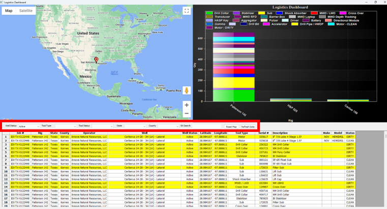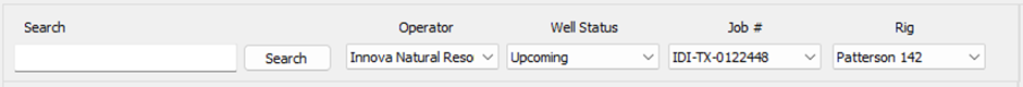 6\. Find your job in the list of wells on the server database. You can use the search box and the filter drop down boxes at the top of the window to narrow down the list.