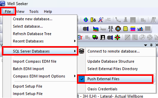 23\. Open the **File** menu and select **SQL Server Databases**. Make sure the **Push External Files** is toggled ON.
