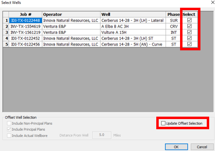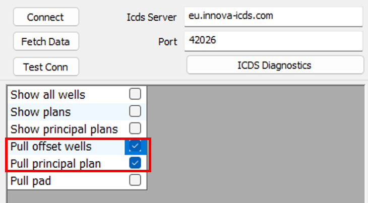 7\. Make sure that **Pull Offset Wells** and **Pull Principal Plan** have been turned **ON** in the options section the bottom right corner of the window.