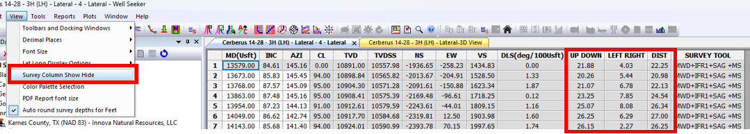 It is accessed via the Slide Sheet. Open one of the surveys for the well you wish to view. Then right click on the survey in the database tree and select **Reporting >> Slide Sheet.**