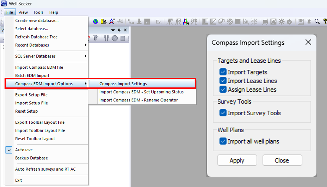 6\. Select the correct Compass export file to import that includes final well plan and any offset wells not already included in the database. You may notice that your database tree contains slightly different names when imported into Well Seeker, compared to the original Compass file. This is because Well Seeker requires names in the database tree to be unique, whereas Compass does not. Well Seeker will modify names to avoid conflicts. For more information on the logic behind this process, visit this page: [**EDM Import Function Update**](https://docs.innova-drilling.com/introduction/well-seeker-pro-guides/recommended-job-startup-procedure-sql-server-database)