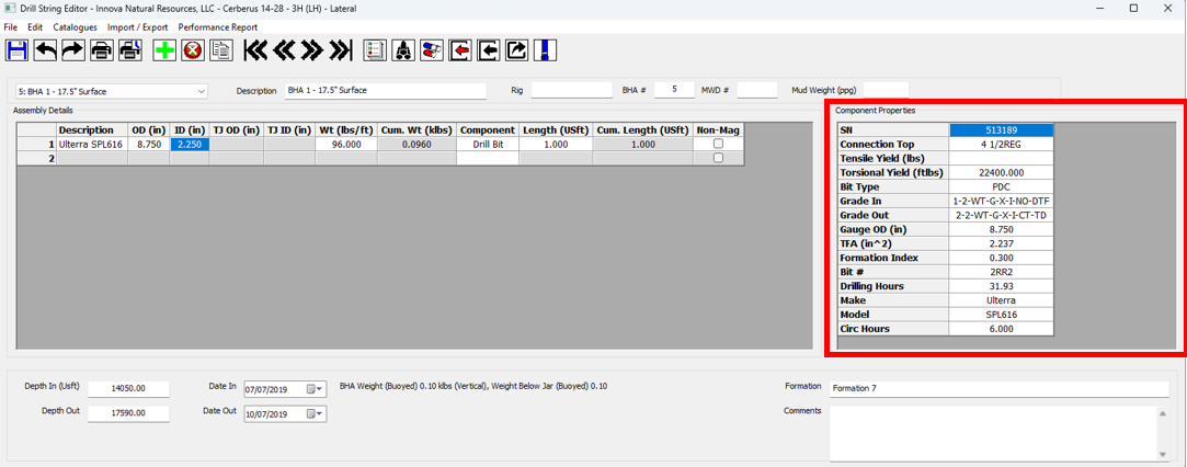 a. Parameters have been filled in. If not, you can click on the **Get Data from DDR** button in the toolbar. This will automatically update the drilling parameters in the performance report.