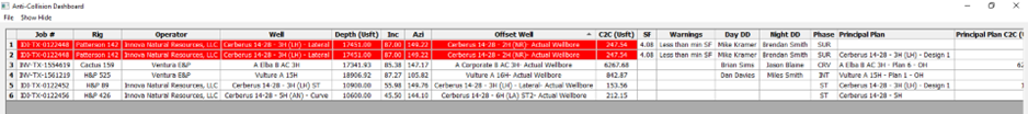 14\. Double click on the actual wellbore to open the actual wellbore table. Click on the **Select Offsets** icon in the toolbar, or open the **Tools** menu and select **Offset Selector.**