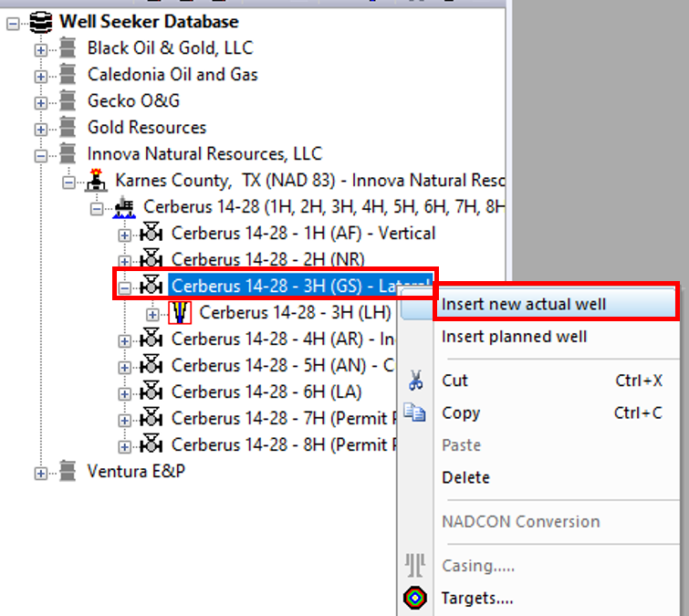 9\. Right click at well level and select **Insert new actual well**.