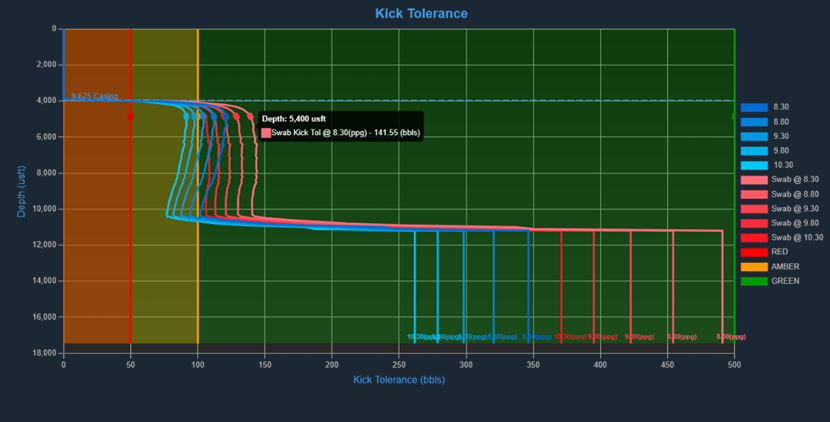 This section applies to calculation for the Kick Tolerance results chart.