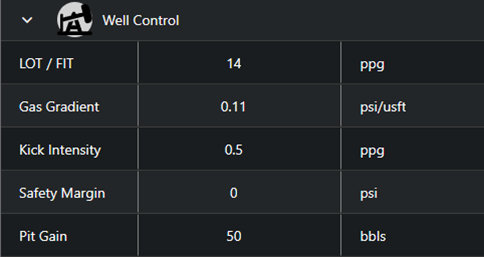 **Pit Gain:** The expected pit gain before the well is shut in.