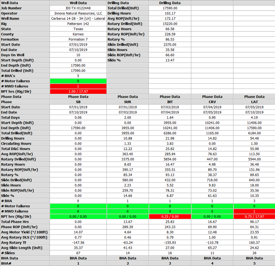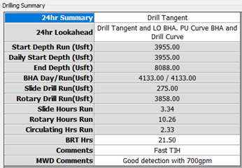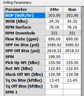 Rotary Drill Run – The distance drilled in rotary over the course of the current BHA run. Calculated by subtracting the Slide Drill Run from the Drilled Run.
