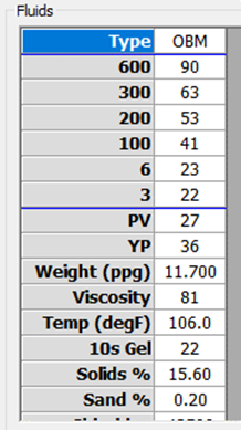 Casing Wt: The weight in lbs/ft of the deepest casing currently in the hole.