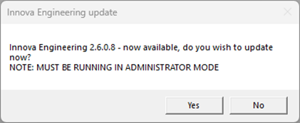 From version **2.6.0.6** onwards, Innova Engineering will automatically check (by default) for updates every time it is opened. If an update is available, then the below dialog will appear.