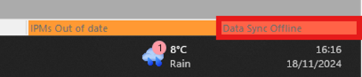 The local user can manually pause the data sync by selecting **File >> SQL Server Databases >> Data Sync Offline.** When the data sync is paused, the message *Data Sync Offline* will display in the bottom right corner of the Well Seeker window. This allows the user to make adjustments to local databases without these changes being reflected on the server, which can be useful when troubleshooting. Note that the data sync will resume if the user closes and re-opens Well Seeker i.e. the Data Sync Offline option does not save, and is therefore reset every time Well Seeker is closed and reopened.